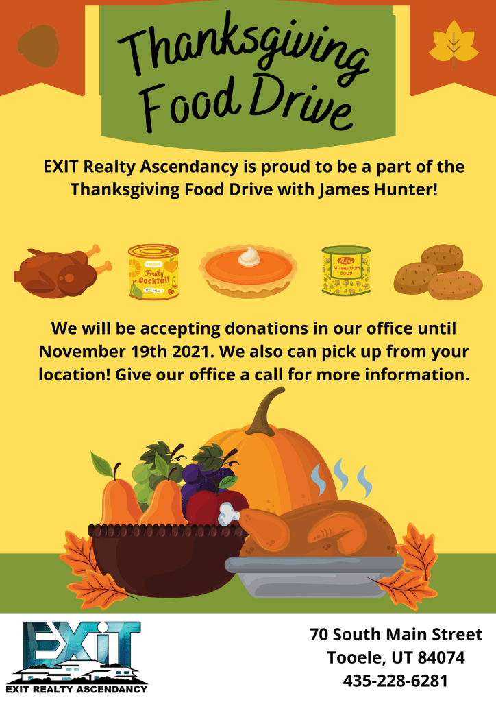 EXIT Realty Ascendancy is proud to be working with Street Dawg Crew of Utah for a Thanksgiving Food Drive. We are currently accepting donations in our office until Friday November 19th. We are accepting non-perishables and other food items for Thanksgiving.